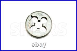 M3x0.6, M4x0.75, M5x0.9, M6x1.0, M7x1.0, M8x1.25, M10x1.5, M12x1.75. M3x0.5, M4x0.7, M5x0.8, M6x0.75, M7x0.75, M8x1.0, M10x1.25, M12x1.5. 17 pcs of 1 OD non-adjustable die stock. 1 pc of adjustable tap and reamer wrench.
