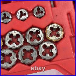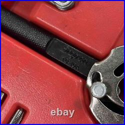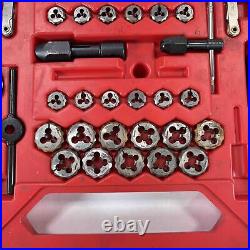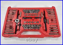 Type: Tap & Die Set. Snap-on Tools 74-Piece SAE and Metric Master Tap and Die Set Half Hard Case. This tap and die set is previously owned and inspected fully. There are surface marks, scuffs, and faint surface rust on a few pieces. Missing the top of the cover.