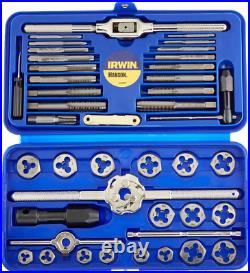 41-Piece set in plastic case. We're working with a variety of tradesmen to solve endless fastening challenges: Irwin Hanson Taps and Dies are the answer. Whether creating new tools from raw steel or repairing damaged and worn threads, achieving a precise fit is essential. Irwin Industrial Tools sets the standard for delivering quality every step of the way in your threading applications. TR-88 adjustable handle tap wrench, TR-73 two-in-one tap wrench, TR-50 2-in-1 tap wrench. 18 leaf standard thread pitch gauge and screwdriver. 41 Piece, Metric Tap & Hex Die Set, Dies Are Ideal For Routine Maintenance, Repair Work & For Rethreading Where High Accuracy & Tolerance Thread Is Not Critical, Taps Have Straight Flutes Which Are Ground To Provide Rapid Chip Removal For Efficient Threading, Designed For Hand Threading Work In A Variety Of Materials Taps Produce A Class 2B Thread, Includes Metric 3 mm x 0.50, 4 mm x 0.70, 4 mm x 0.75, 5 mm x 0.80, 5 mm x 0.90, 6 mm x 1.00, 7 mm x 1.00, 8 mm x 1.00, 8 mm x 1.25, 9 mm x 1.00, 9 mm x 1.25, 10 mm x 1.25 mm, 10 mm x 1.50, 11 mm x 1.50, 12 mm x 1.50, 12 mm x 1.7M Tap & Die, Pipe 1/8inch x 28BSPp Tap & Die, Plain Die Stock 5/8inch Hex Dies, Adjustable Die Stock For 1inch Dies, Adjustable Handle Tap Wrench For #0 - 1/2inch, T-Handle Wrench For Taps #0 - 1/4inch, 2 In 1 Tap Wrench For Taps 1/4inch - 1/2inch, 18 Leaf Metric Thread Pitch Gauge. Irwin Industrial Tools 26317 41-Piece Metric Tap and Hex Die Set. A Wide Variety of Great Tap and Die Combination Sets.